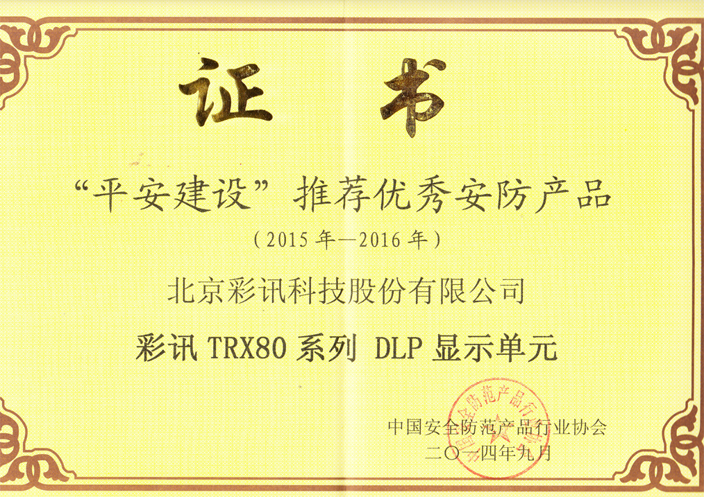 平安建設(shè)推薦優(yōu)秀安防產(chǎn)品證書